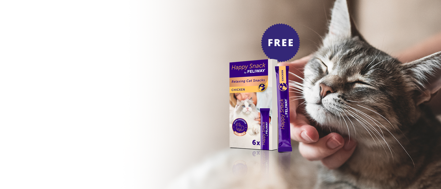 Our range of pheromone-based products is designed to support cats through all of life’s challenges: FELIWAY Optimum – our most advanced calming solution, offering enhanced serenity and reducing more signs of stress. FELIWAY Classic – our original pheromone to help reduce signs of stress like scratching and spraying. FELIWAY Friends – promotes harmony between cats living together. FELIWAY Help! – a convenient 7-day support for temporary stressful situations like travel or visitors. The latest addition to the range is Happy Snack by FELIWAY® – a delicious way to support your cat’s emotional balance. These tasty treats contain a natural milk protein with calming properties, offering a gentle option to help reduce everyday stress and build your bond with your cat.