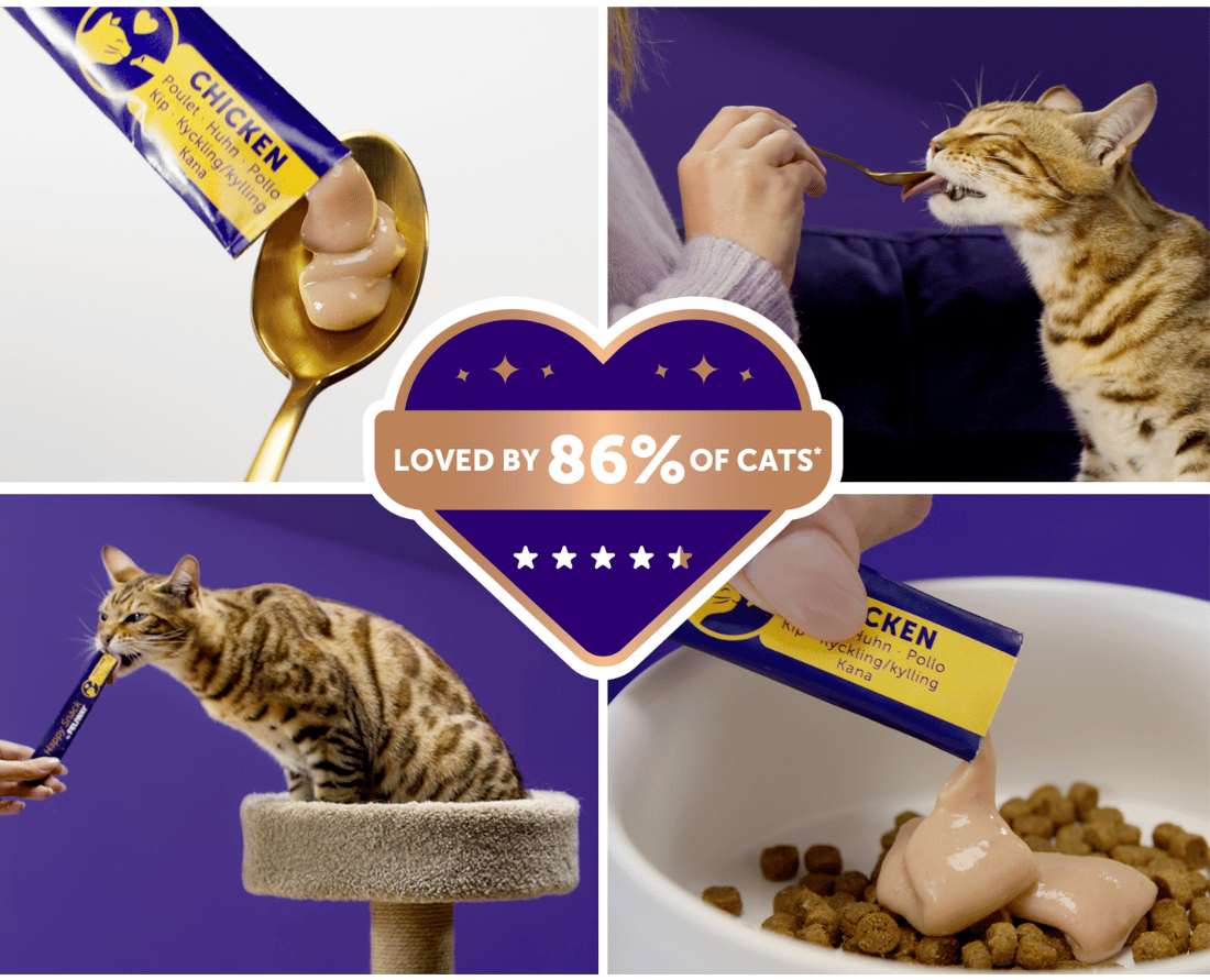 Strengthen the bond with your cat, the delicious chicken flavour cat treat is loved by 86%* of cats.